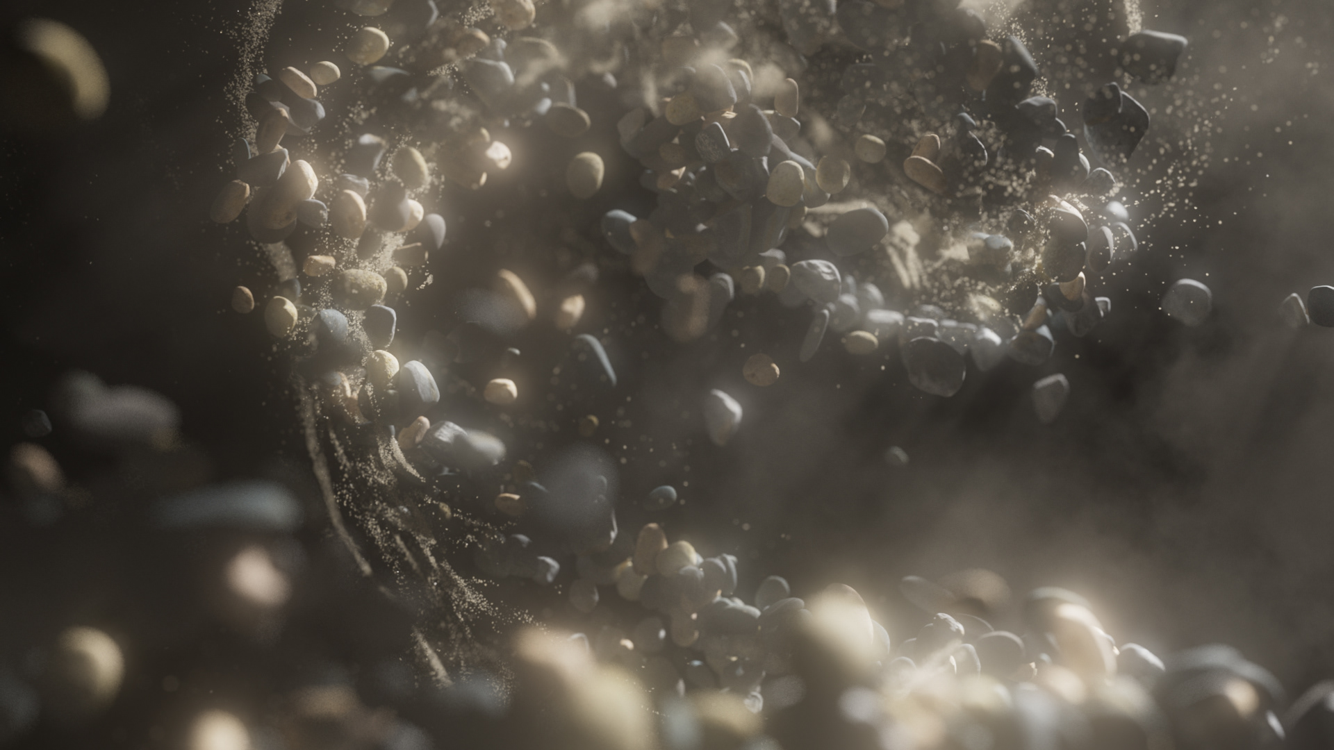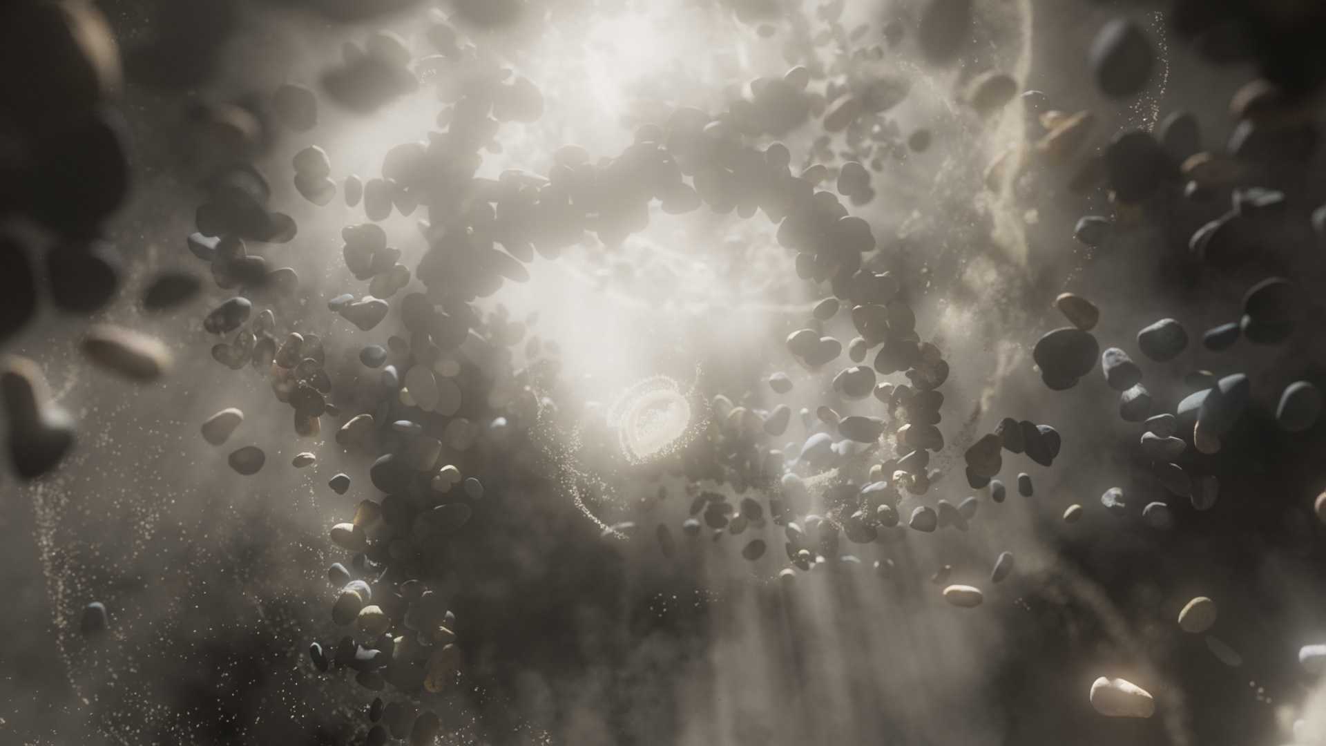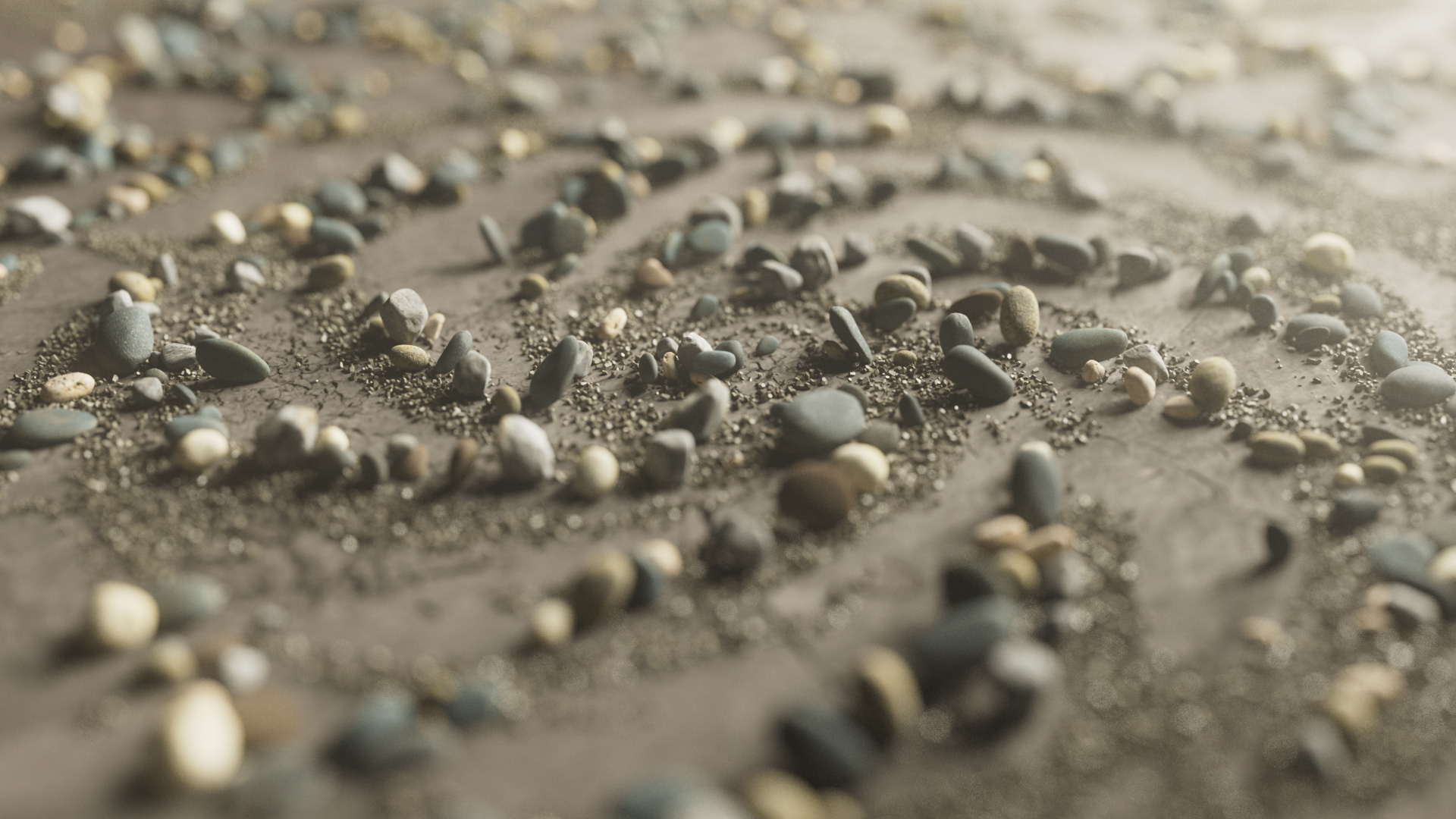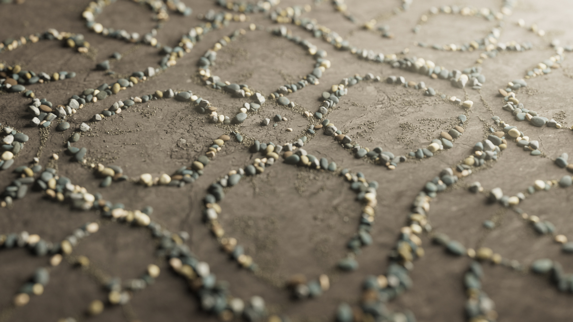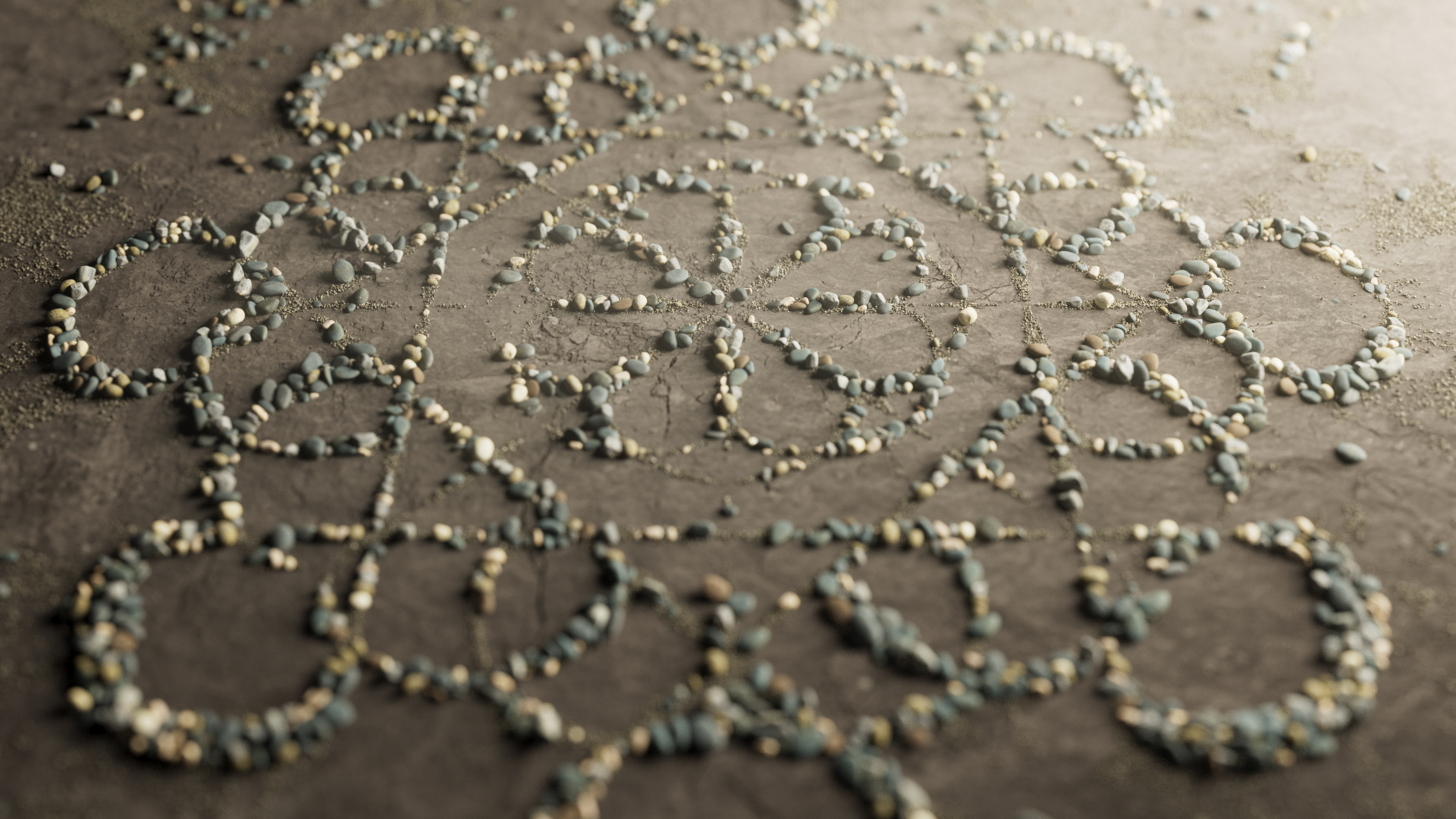 This animation is inspired by Land art and the Chladni Figures that form when a vibrating plate is lightly covered with sand.